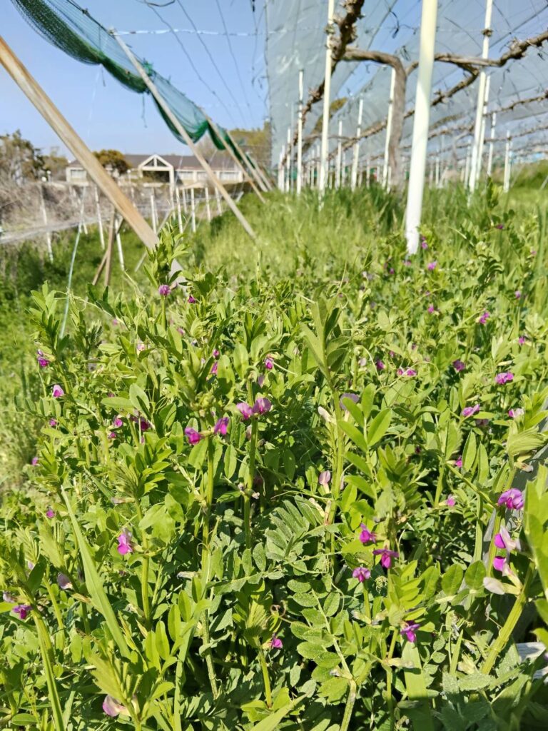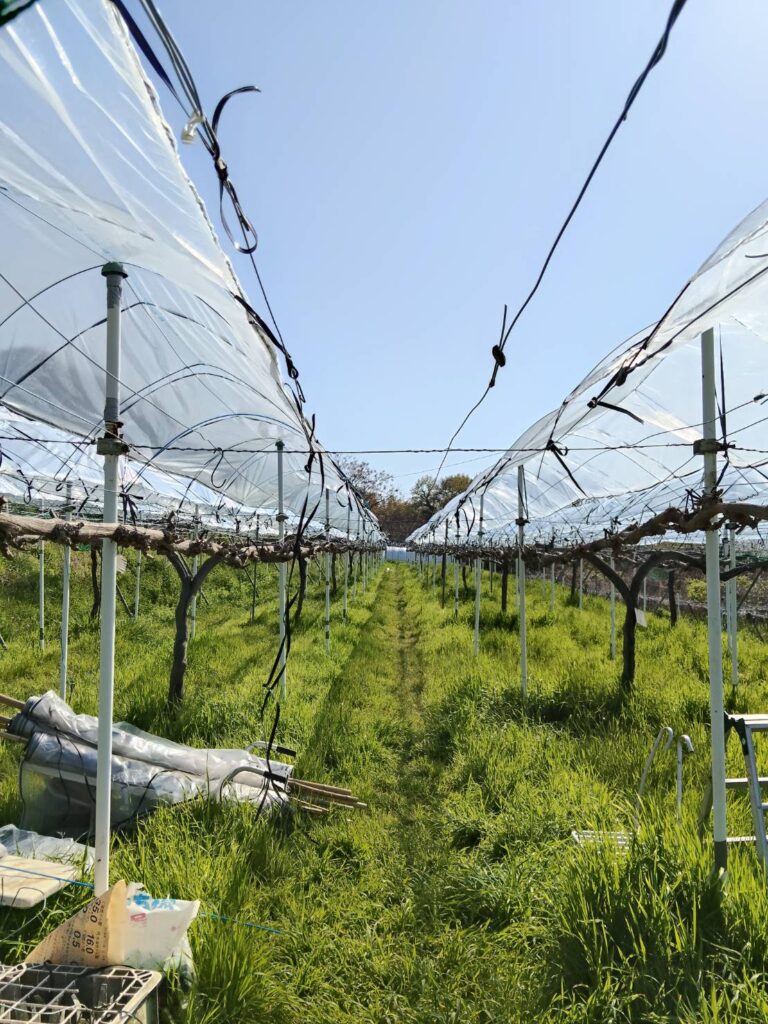 この園は80mを7本、「雨除けシート」は雨と日差しを避け、夏まで作業を助けてくれます。